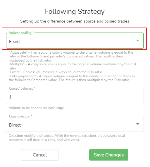 - The correction sets the maximum amount of copied trades that will eventually be executed. CopyTrading's follower can not only control the risk of the trading position of the signal source, but also control the risk of the size of the position they should place.