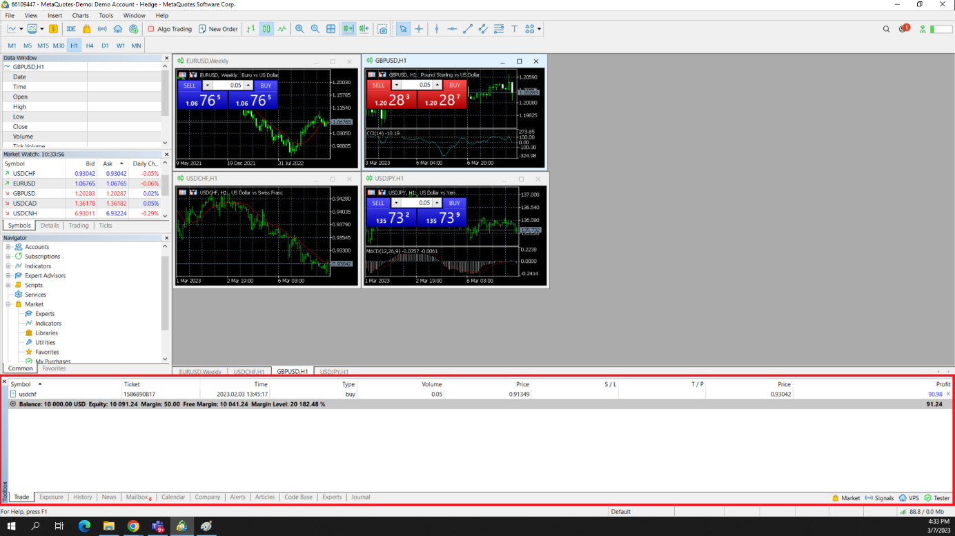 Users can switch between different trading accounts under [Account] in [Navigation], and set indicators and EA transactions.