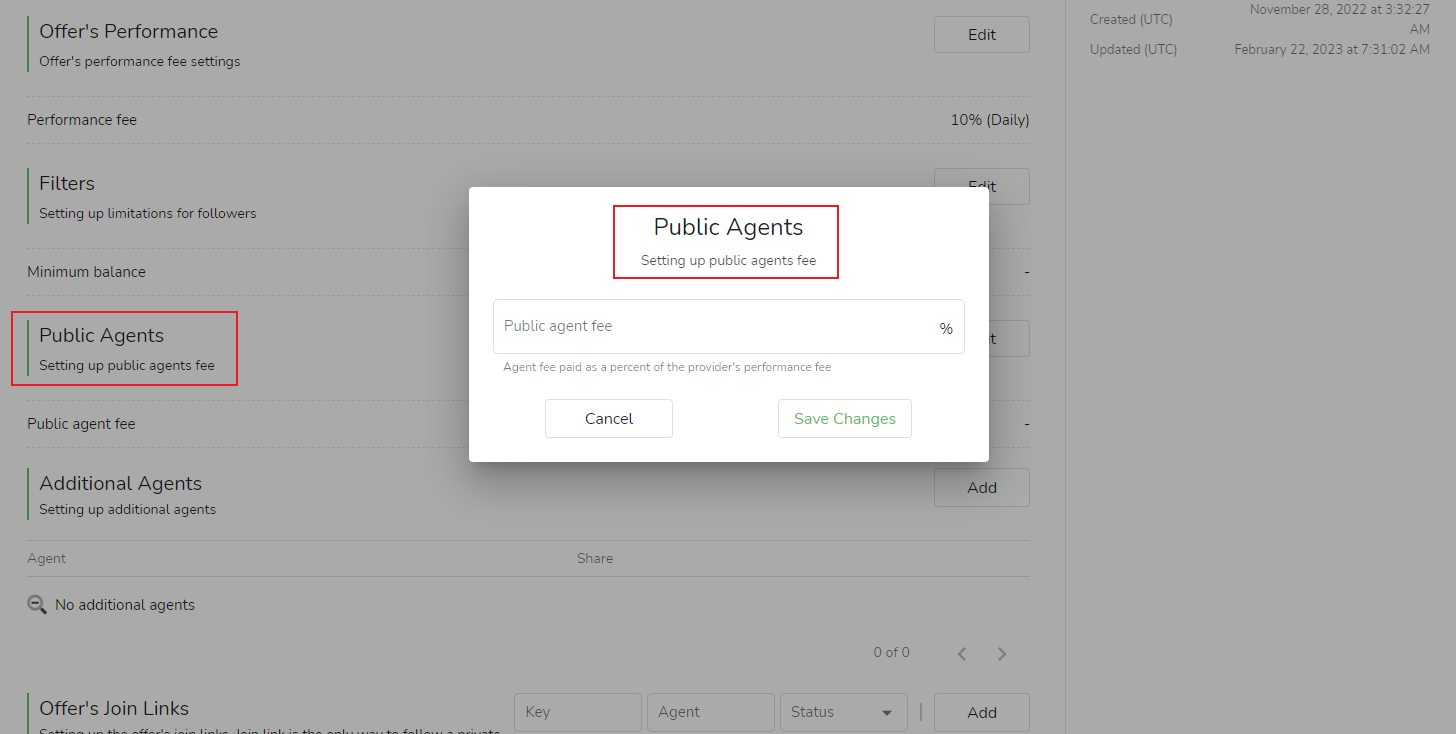 El presentador es responsable de promocionar la fuente de la señal y atraer seguidores para que se suscriban. La fuente de la señal debe pagar la tarifa de promoción al promotor que atrae con éxito a los seguidores para que se suscriban. Las tarifas de promoción introductoria dependen directamente del rendimiento de la suscripción. La fuente de la señal puede establecer la tarifa de promoción de referencia como un porcentaje para una condición de copia y, una vez establecida, se aplica a todos los promotores.