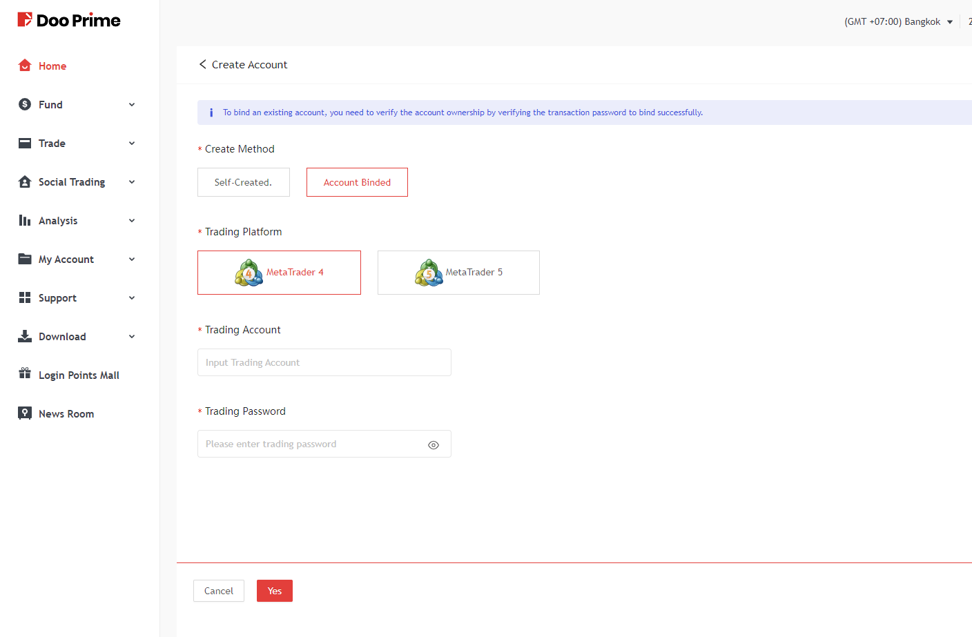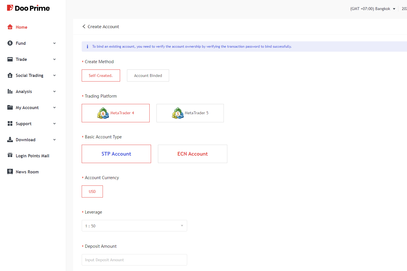 4. 그런 다음 D Prime 공식 웹사이트를 통해 데모 계정을 신청하는 위의 3단계를 참조하여 D Prime 사용자 센터에서 데모 계정을 추가하는 절차를 완료하고 데모 계정을 신청하세요.
