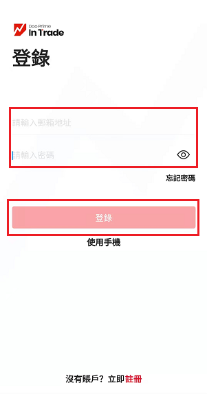 如您没有 D Prime 用户中心的账户,请点击打开应用程序 — D Prime InTrade,于界面底部点击「注册」。