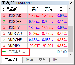 1. 在市場報價的窗口下直接添加相關交易品種的代碼: