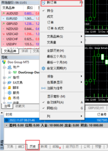 5. 在圖表窗口中新建訂單,在圖表空白處右鍵,點擊【交易】,創建一個新訂單。
