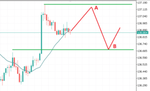 b)投資者預計USDJPY將會下破A線阻力位位,然後反彈B線受到阻擋再次下跌,於是就可以使用Sell Stop Limit訂單類型;