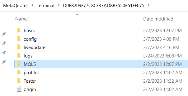 2. Sau khi mở tệp MQL5 trong thư mục dữ liệu, hãy chọn thư mục đích: