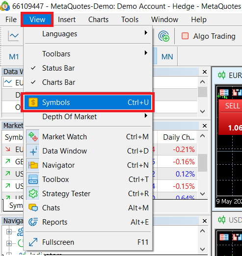 Nếu cửa sổ báo giá thị trường không được hiển thị, trước tiên bạn cần nhấp vào [Xem] trên thanh menu, sau đó chọn [Báo giá thị trường]