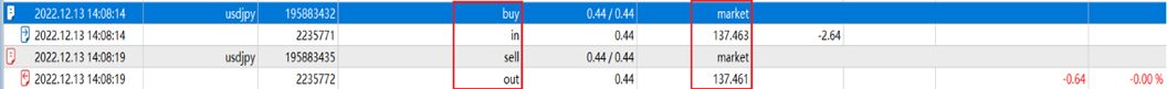 Việc mở và đóng một lệnh được thể hiện bằng hai số lệnh tương ứng, trong khối lượng giao dịch sẽ hiển thị khối lượng đặt lệnh và số lượng giao dịch thực tế, nếu giao dịch dựa trên giá thị trường, nó sẽ hiển thị: Thị trường; nếu nó là một giao dịch giá giới hạn, nó sẽ hiển thị giá giao dịch cụ thể;