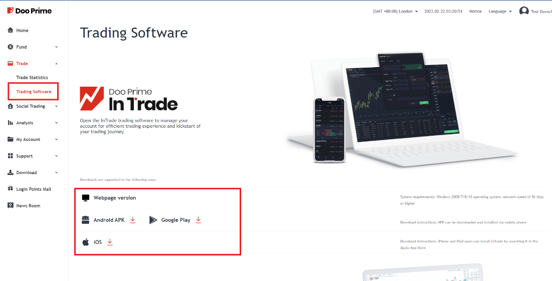 Bạn có thể chọn tải xuống trực tiếp từ trang web chính thức của Doo Prime hoặc đăng nhập vào trung tâm người dùng Doo Prime.